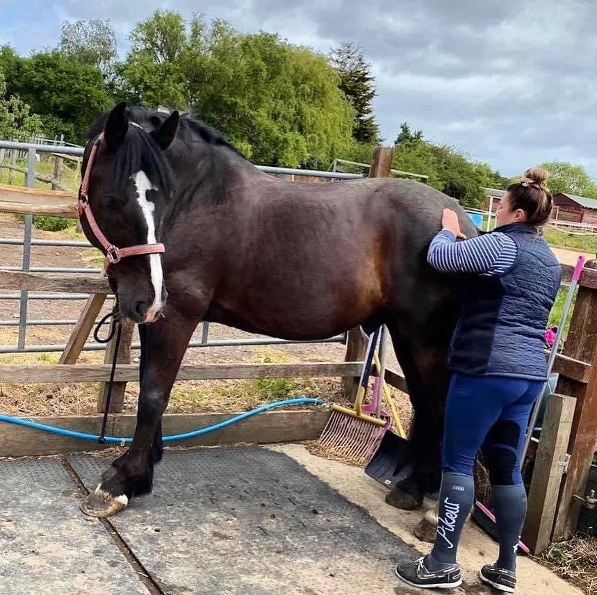 A typical treatment consists of Sam watching the horse moving, in both walk and trot. Discussing with the owner about previous history, any relevant injuries, daily workload, routine, and if the horse has regular visits from other professionals such as saddle fitter, dentist, farrier. After this initial background information has been given then the full body treatment, focusing on the problem areas, with stretches is carried out. Suggested groundwork and ridden exercises to support ongoing muscle development between recommended treatment sessions are given. These exercises help maintain and enhance the benefits of the therapy.